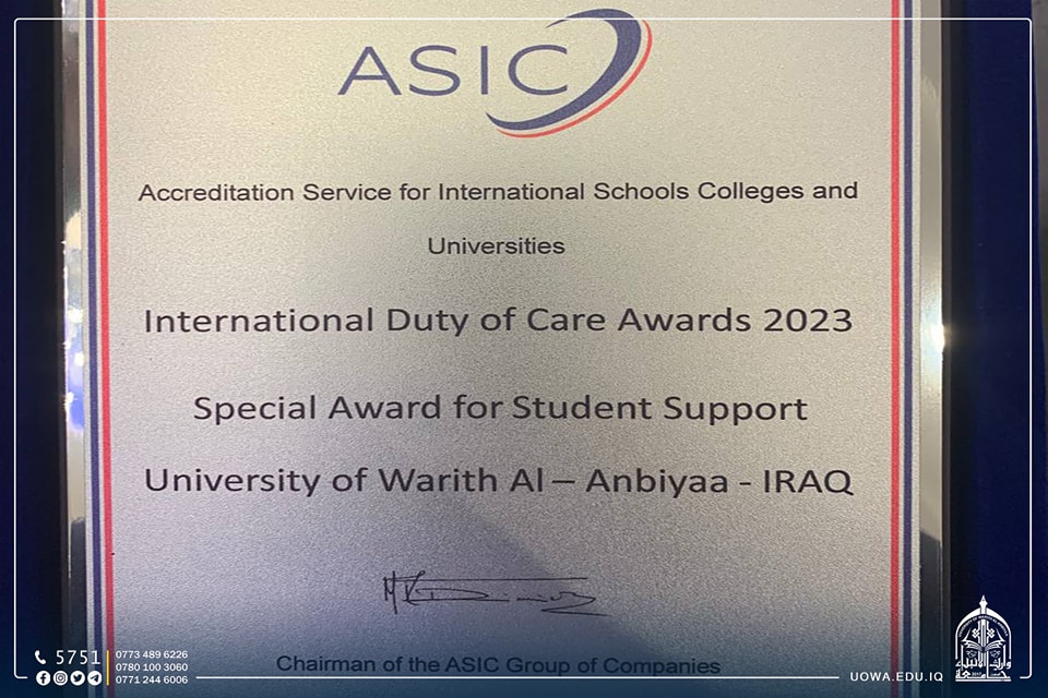 Assistant Professor Dr. Haider Al-Ghanimi, the Director of the Center for Continuing Education, and Assistant Professor Hussein Hazem Al-Ghanimi, the Head of the Quality Assurance Department, participated in the international conference organized by the British organization "Accreditation Service for International Schools, Colleges, and Universities (ASIC)." ASIC is an accreditation body for various international universities, institutes, and academic institutions.