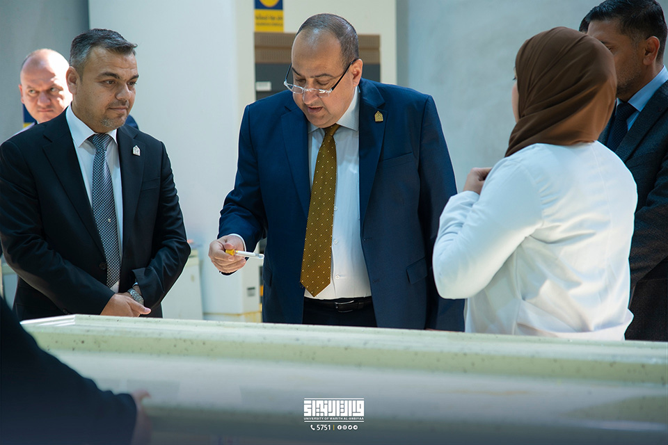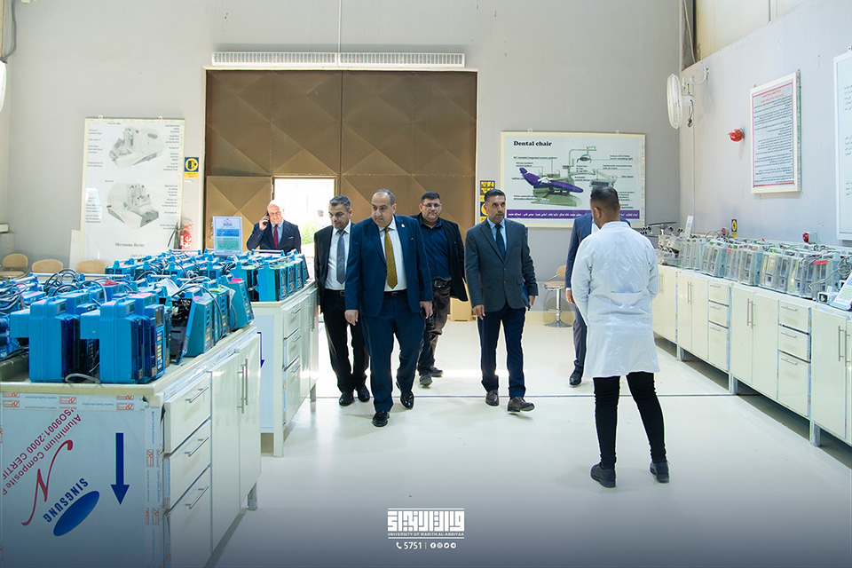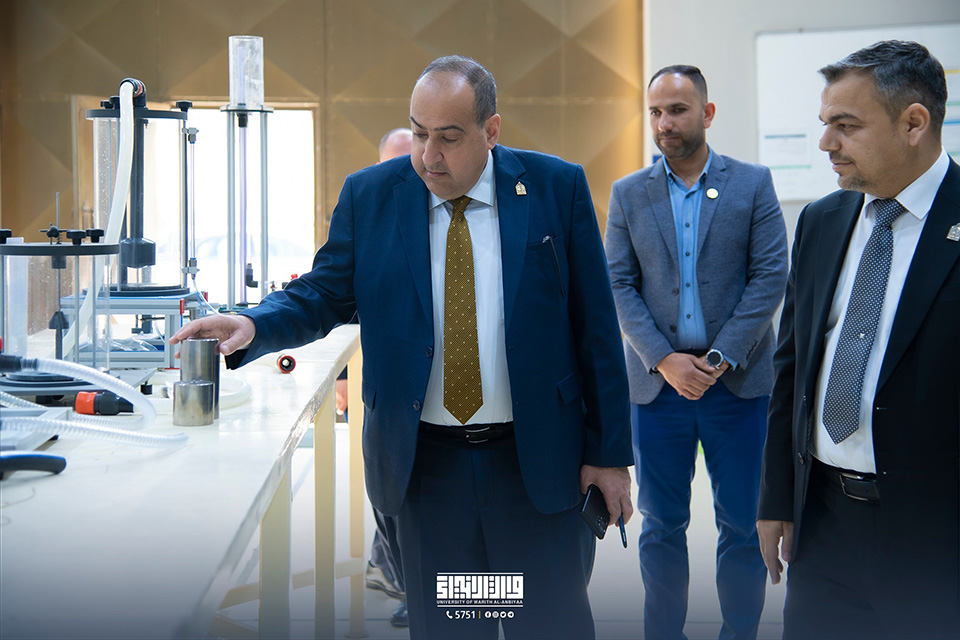 Professor Ibrahim Al-Hayawi, President of the University of Warith Al-Anbiyaa (peace be upon him), conducted a field inspection tour with Professor Waqad Al-Mousawi, Assistant Scientific, and Professor Hussein Hadi Al-Awadi, Dean of the College of Engineering. The aim of the tour was to assess the needs of engineering workshops and equipment. Various workshops and engineering facilities at the college were explored during the tour, evaluating the requirements for laboratory devices and engineering equipment necessary to enhance and improve the educational and research process at the college. This comes within the university's commitment to providing a distinguished educational environment and equipping engineering workshops with everything necessary to meet the needs of students and researchers, and to enhance progress and advancement in the fields of engineering and technology.