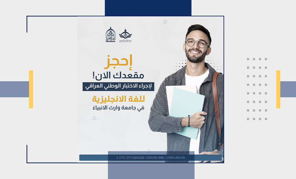 The University of Warith Al-Anbiyaa (PBUH) announces the opening of reservations for the Unified Iraqi National English Language test.