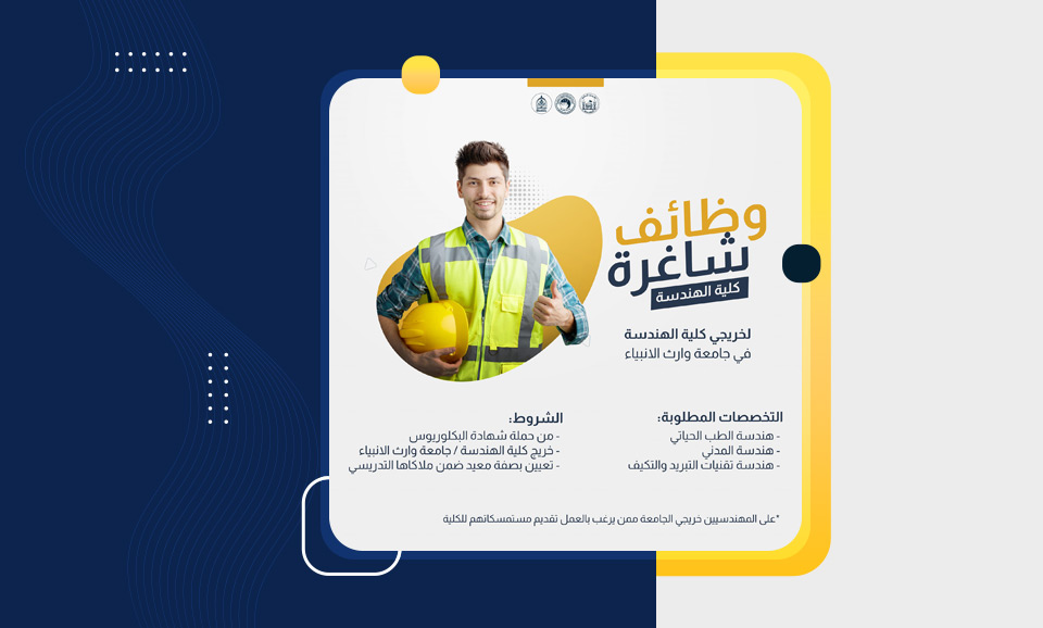 The University of Warith Al-Anbiyaa (PBUH), the College of Engineering, announces its need for job positions in order to fulfil its long-term goals and bolster its teaching staff.