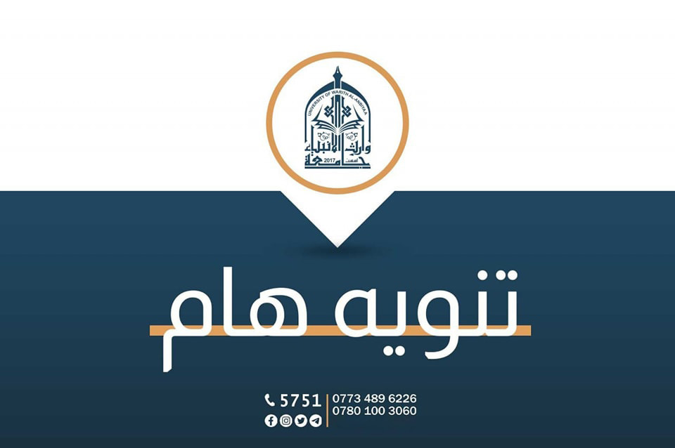 Don't hesitate to join us at the University of Warith Al-Anbiyaa (Baghdad-Karbala Road / Al-Aala Building / Third Floor), and we will be happy to assist you and provide necessary support.