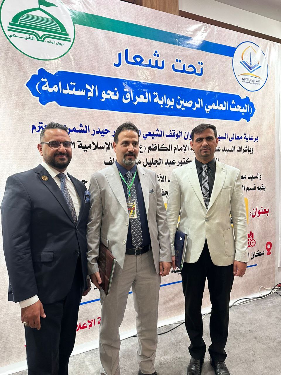 The faculty members participating in the conference are Assistant Professor Dr. Mohammad Majid Jwad, Head of the Business Administration Department at the College of Business and Economics at Warith Al-Anbiya University, Assistant Professor Dr. Fahd Magmeesh Al-Shammari, Head of the Oil and Gas Economics Department and the Scientific Assistant Dean of the College of Business and Economics, and Assistant Professor Dr. Hussein Mohammad Ali Kashkool.