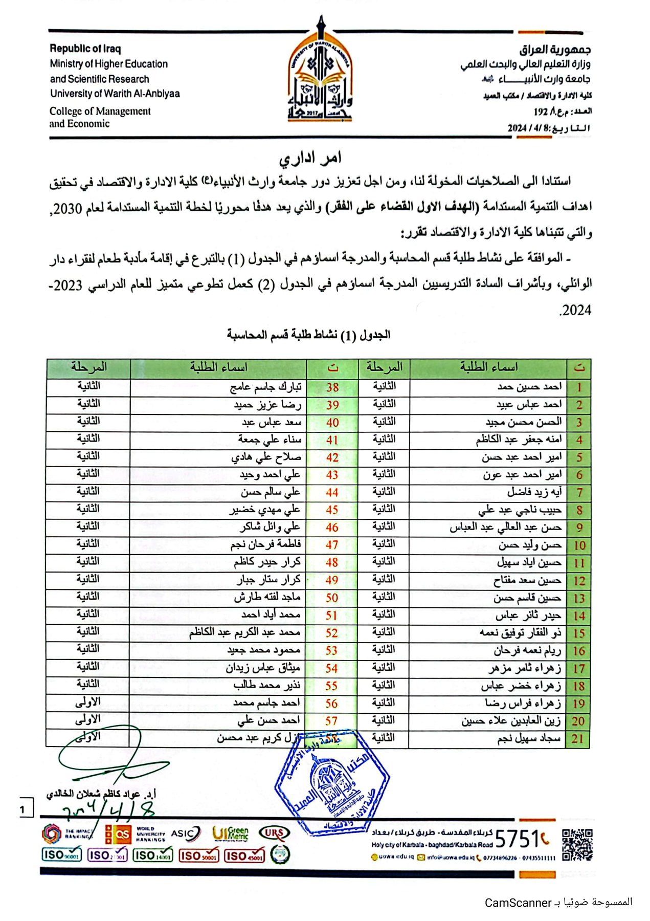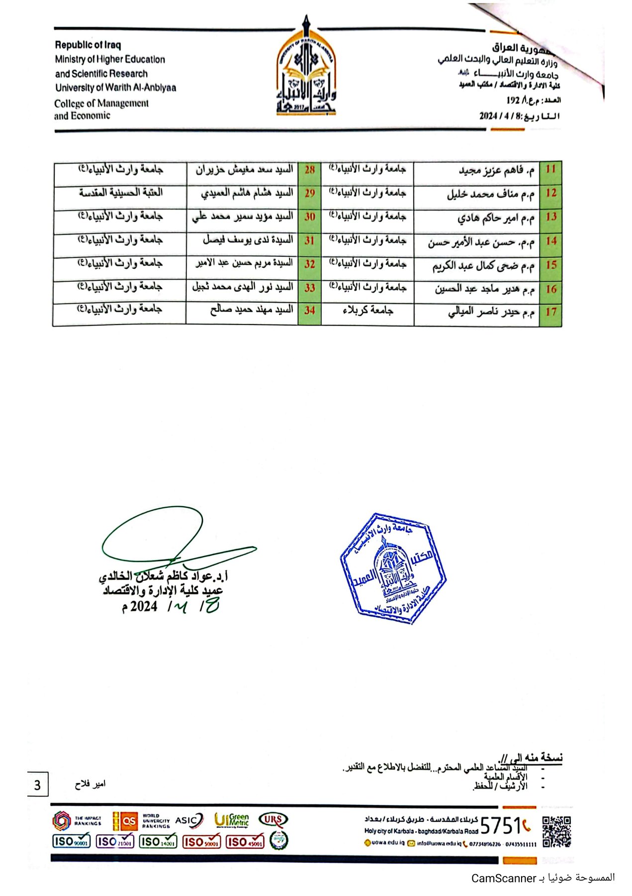 An Iraqi university recognized by the Iraqi Ministry of Higher Education and Scientific Research under Ministerial Order No. (T.A./K 4727 in the year 2017)
