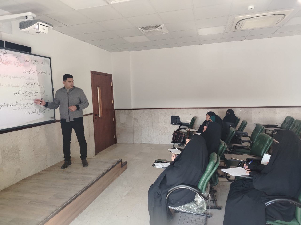 The workshop was delivered by Assistant Lecturer Abbas Adnan Kamel, who addressed the key difficulties encountered by student teachers during their field training. Topics included classroom management, effective delivery of academic content, and interaction with students and school administration.