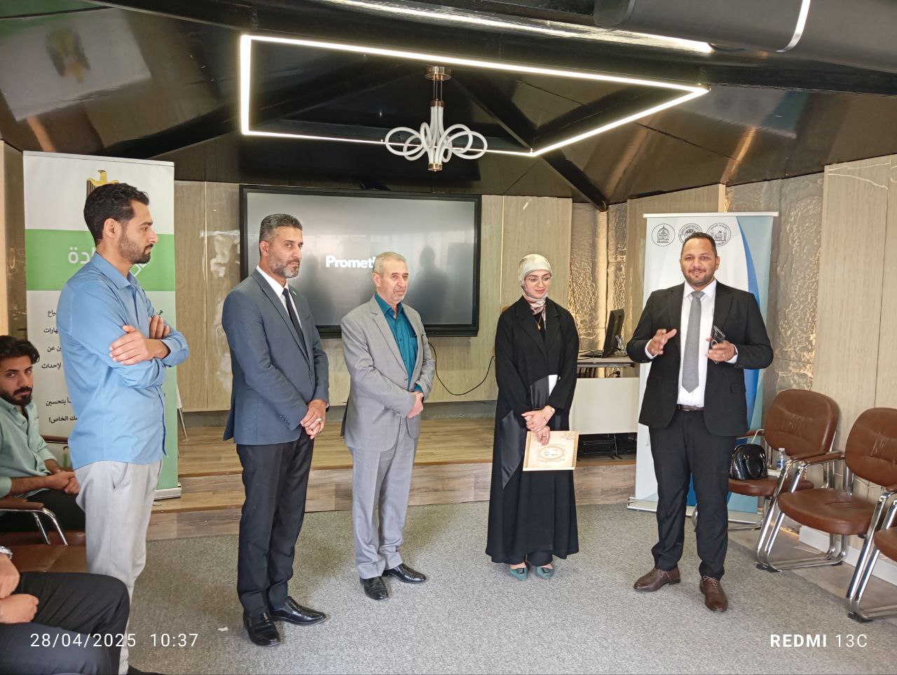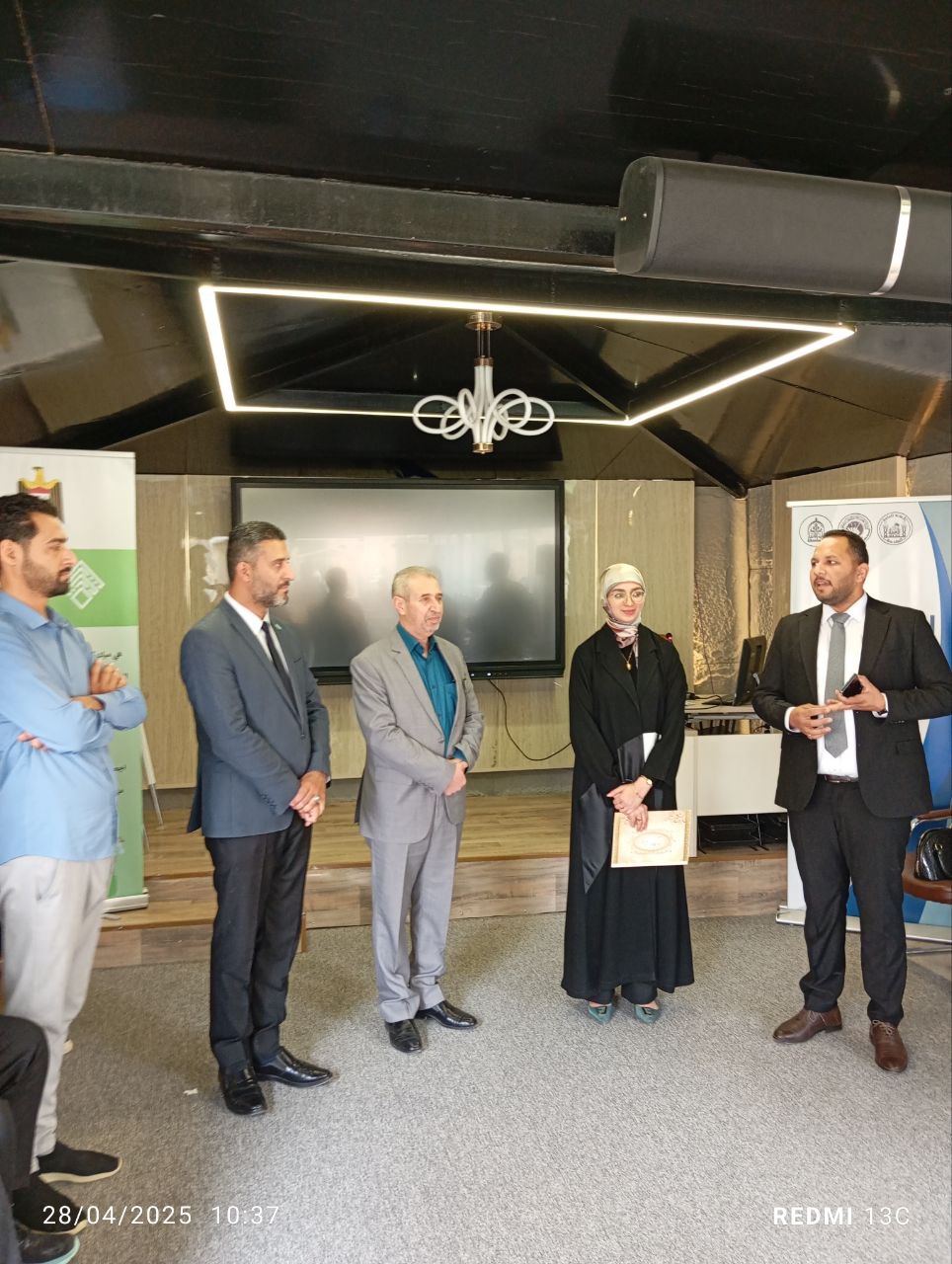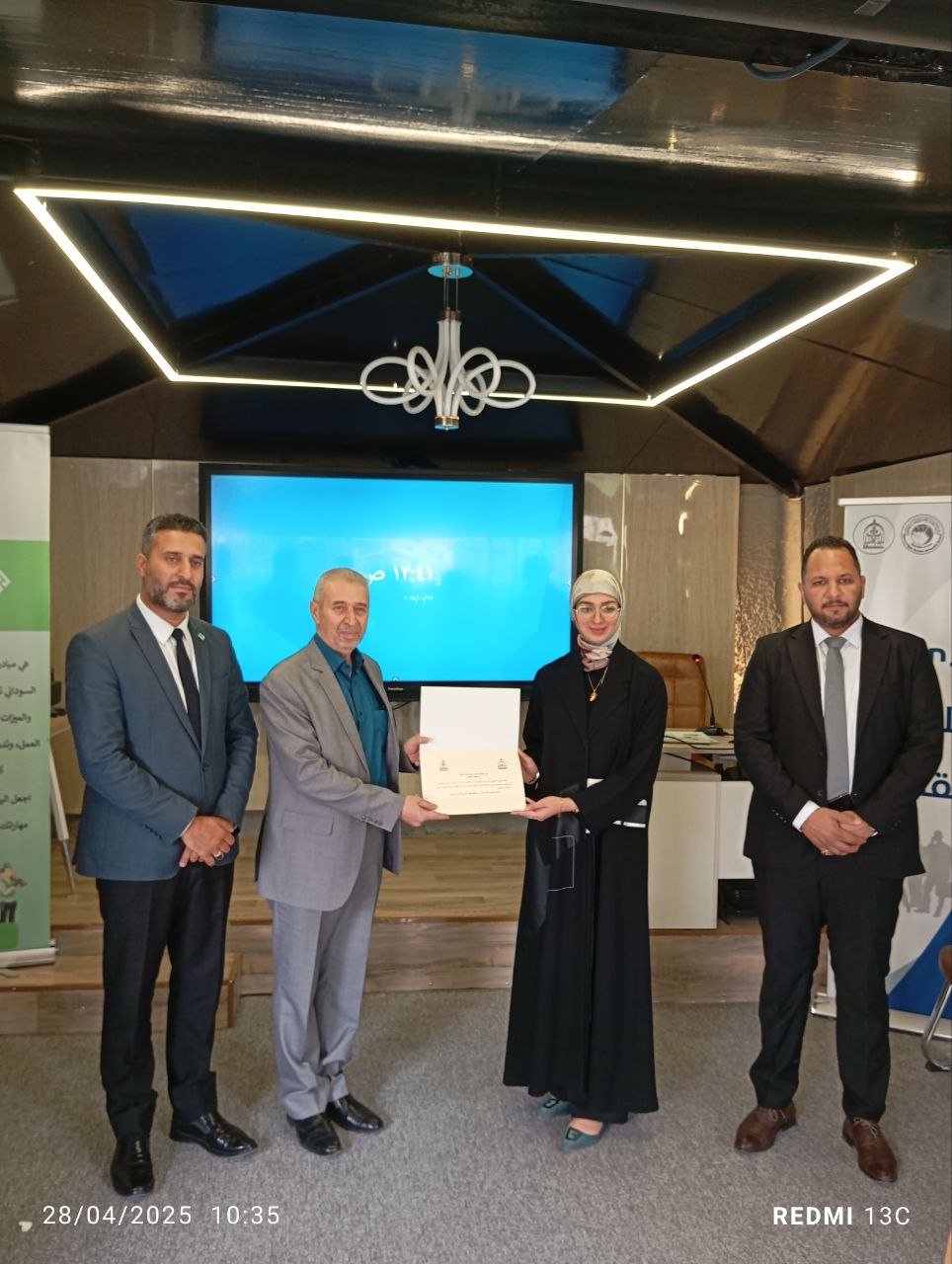 In a gesture that reflects the spirit of support and collaboration among the university’s colleges, the Dean of the College of Islamic Sciences, Dr. Talal Faeq Al-Kamali, honored Hajer Hussein, a student from the College of Engineering, in recognition of her first-place achievement in the “A Nation That Reads” competition at the level of Al-Warith Al-Anbiyaa University.