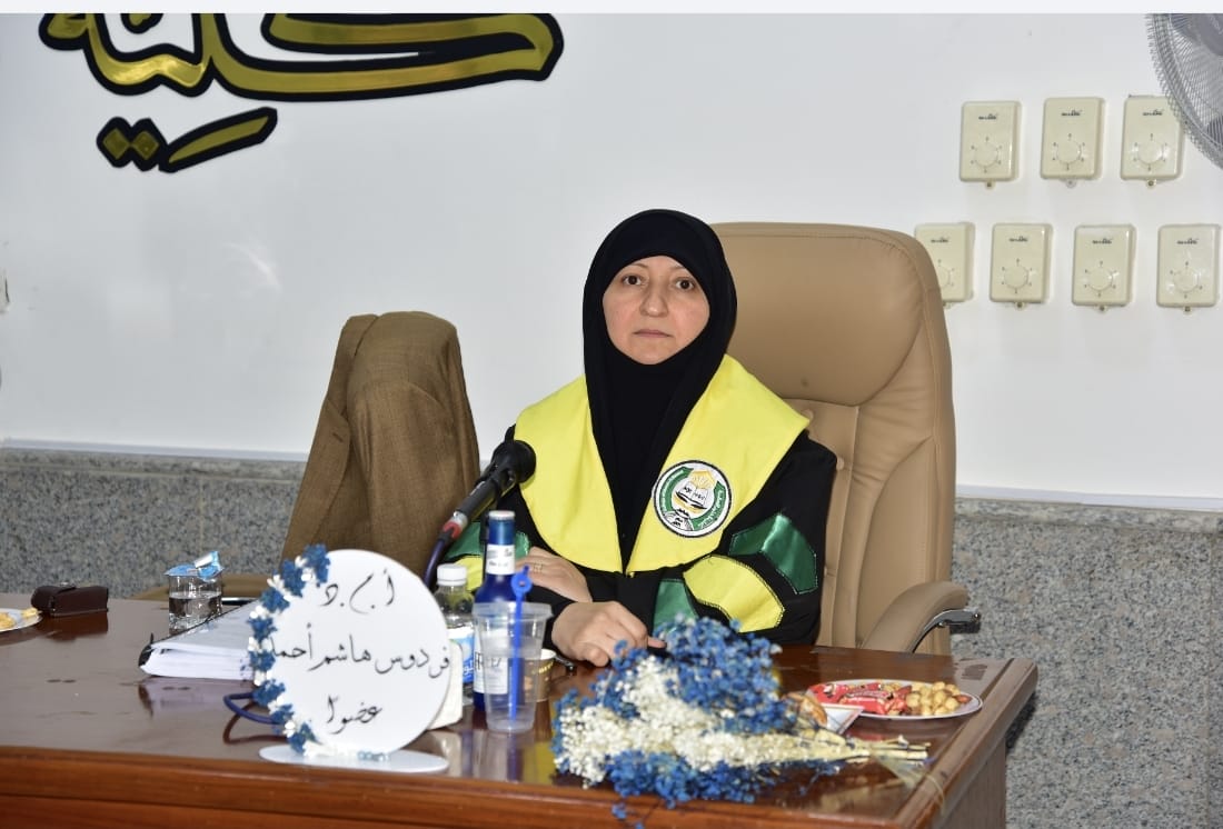 The college congratulates the researcher, her supervisor, her family, and the members of the discussion committee for this distinguished scientific achievement.
