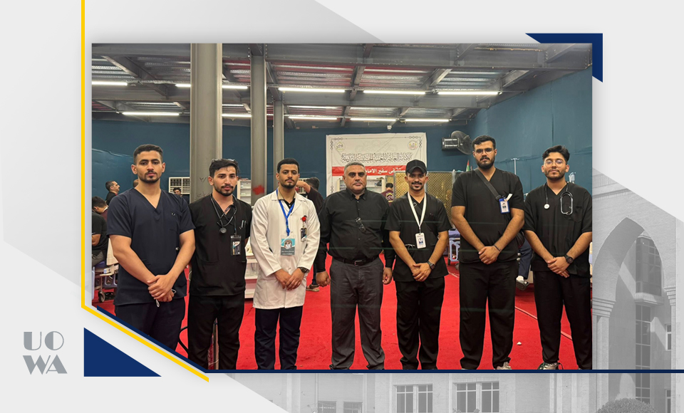 Amidst the sublime spiritual atmosphere of the immortal Arbaeen pilgrimage, the Deanship of the College of Medicine at Warith al-Anbiya University extends its highest expressions of appreciation, pride, and respect to our dear students participating in the medical service detachments deployed along all pilgrims' routes. We express our deep appreciation for the time, effort, and expertise they have devoted to treating, curing, and alleviating the pain of the honorable pilgrims. This would not have been possible without the desire, knowledge, and skill of this good group of our sons and daughters, which enabled them to perform this great task. The evaluations we received from the doctors supervising the work of our volunteer students were wonderful and a source of pride for us all. All supervisors noted the high discipline of our dear students, in addition to their academic potential and clinical skills, which qualify them to work at all times and under the most difficult conditions. This undoubtedly reflects the efforts of the college's professors in training and developing the theoretical, practical, and clinical skills of our dear students. This would not have been possible without the continuous support and ongoing supervision of the esteemed University President. In conclusion, we can only say: