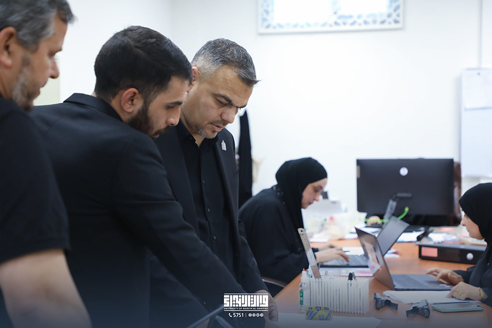 The Karbala Centre for Studies and Research at the Holy Shrine of Imam Hussein sent a delegation, which was met in an official meeting by Professor Dr. Ibrahim Al-Hayawi, President of the University of Warith Al-Anbiyaa (PBUH), and Professor Dr. Waqid Al-Moussawi, Vice President for Scientific Affairs.