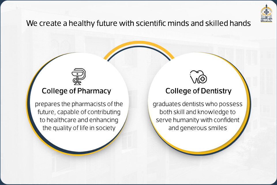 In its pursuit of excellence and dedication to advancing Iraq’s healthcare sector, the University of Warith Al-Anbiyaa (peace be upon him) strives to prepare highly qualified medical professionals through its distinguished academic programs offered by the College of Pharmacy and the College of Dentistry.